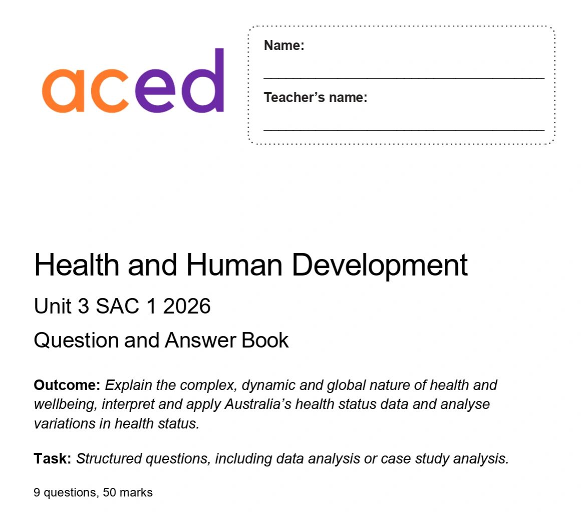 The HRH is partnering with ACED to produce the following new SACs and Trial Exams for 2026.